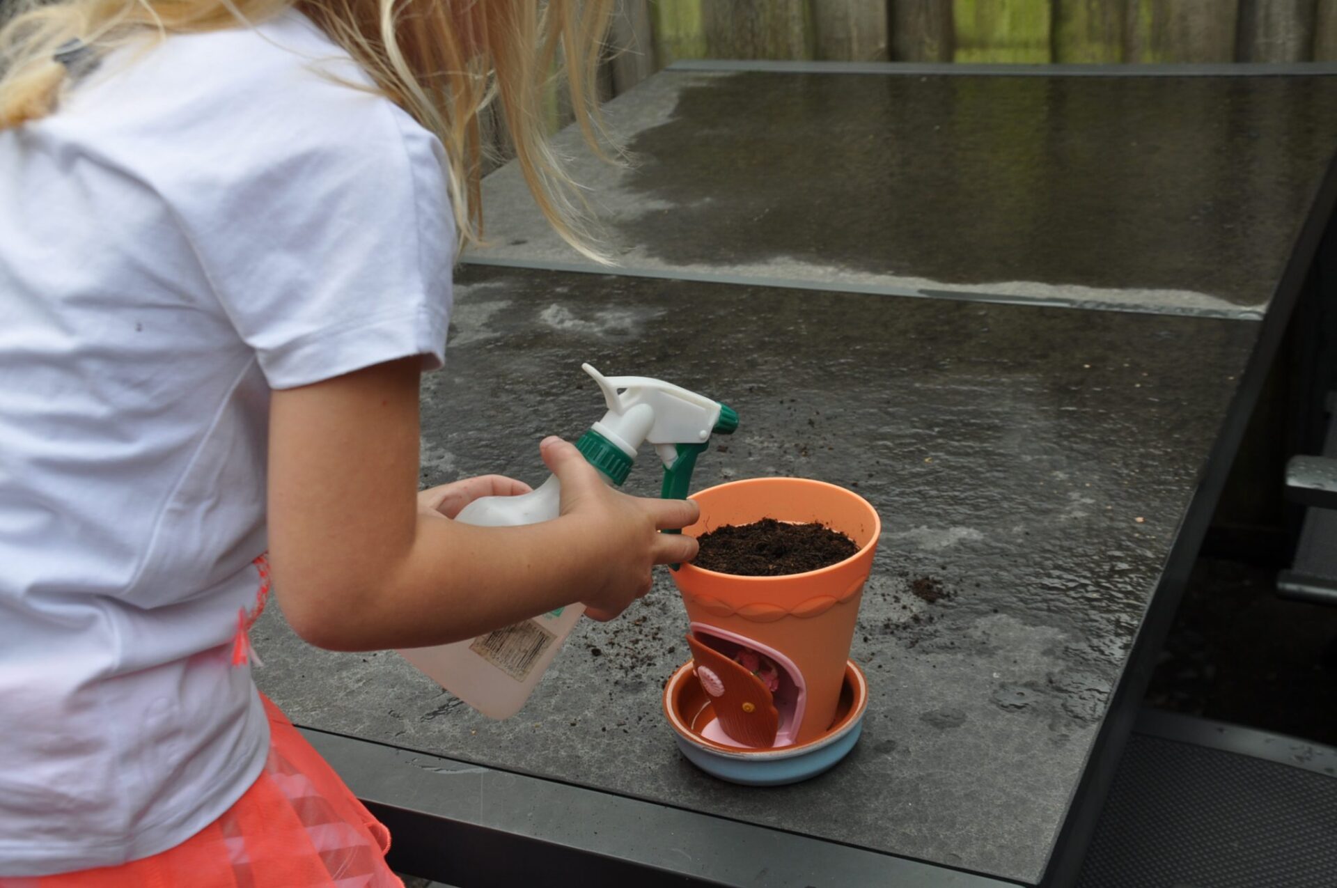 Voor je gaat knutselen moet de aarde er trouwens wel in en de zaadjes geplant! Ik vind het resultaat zelf erg leuk geworden. Na het knutselen was het wachten geblazen op de plantjes. Het mosterdzaad kwam al heel snel op, na 3 dagen.