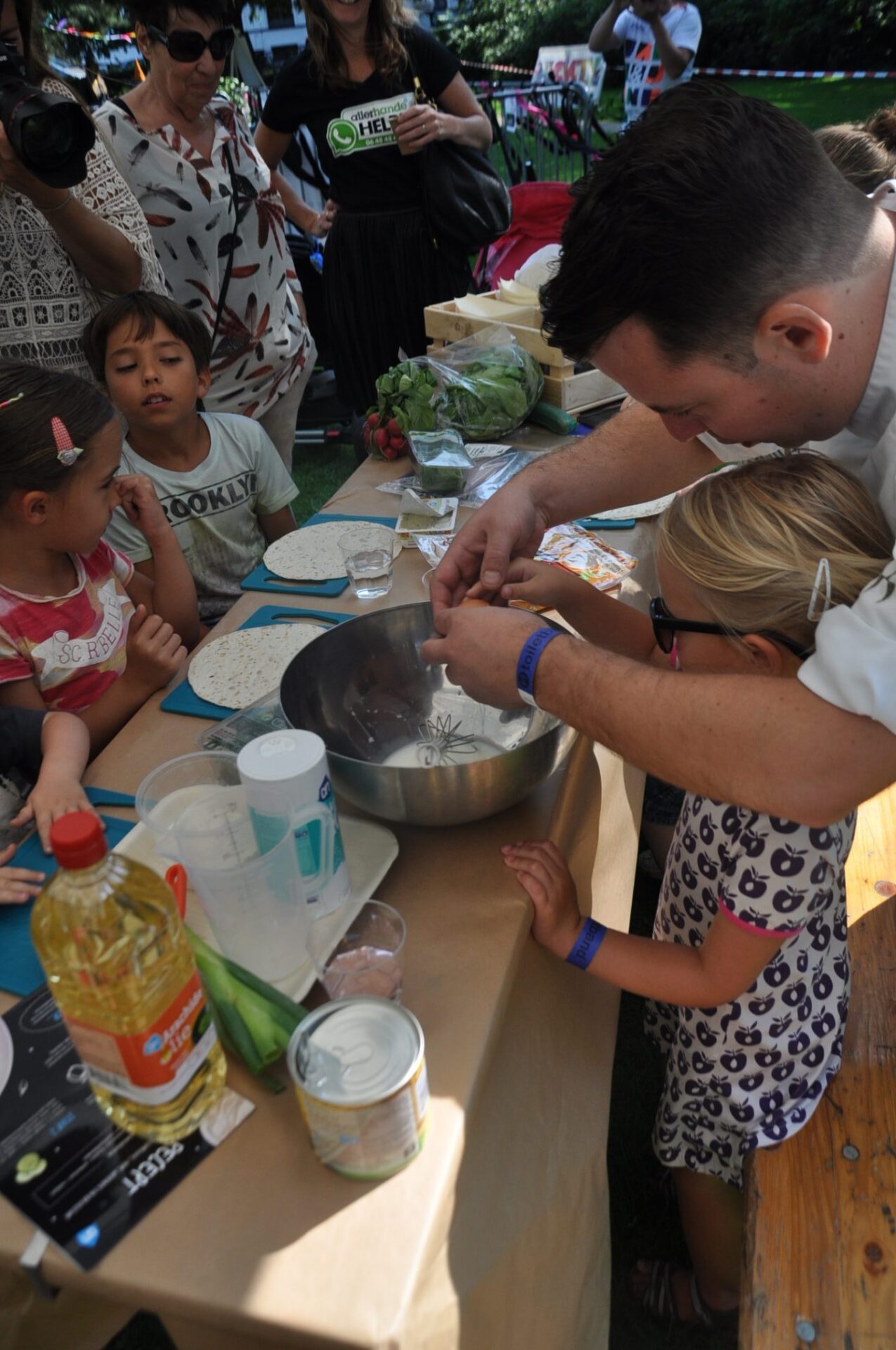 Dochterlief had pijn en baalde ervan dat haar taakje misging, ook schaamde ze zich een beetje. Niet nodig, want mama was boos op zichzelf. What was I thinking om mijn kind van 4 bij een hete pan aan iemand anders toe te vertrouwen? Ik hoop dat de chef ervan geleerd heeft om nooit weg te lopen als hij een kind instructies geeft bij een hete pan. Die andere vraag had best 30 seconden kunnen wachten. Maar goed, dat is allemaal achteraf. Ik wist dat mijn dochter het geweldig vond om hierbij te helpen en daarom vond ik het goed, maar eigenlijk is ze natuurlijk veel te jong om in een pan te roeren. My bad 🙁