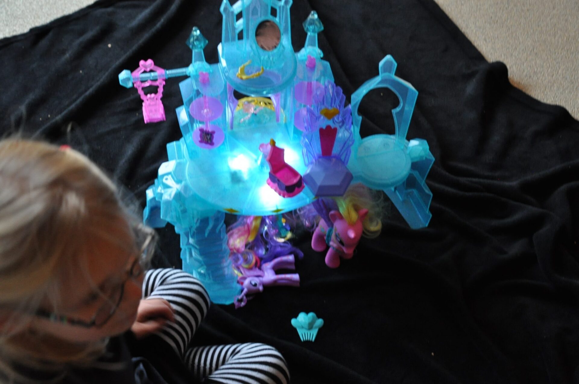 Ademloos keken ze ernaar op televisie tijdens reclames. Ook in de speelgoedboekjes trok hij de aandacht: het kristallen paleis van My Little Pony. Dit lichtgevende kasteel is sinds najaar 2016 verkrijgbaar zodat al je pony’s kunnen swingen in de disco van Princess Cadance. Als groot Little Pony fans stond hij bovenaan het verlanglijstje van mijn dochters…