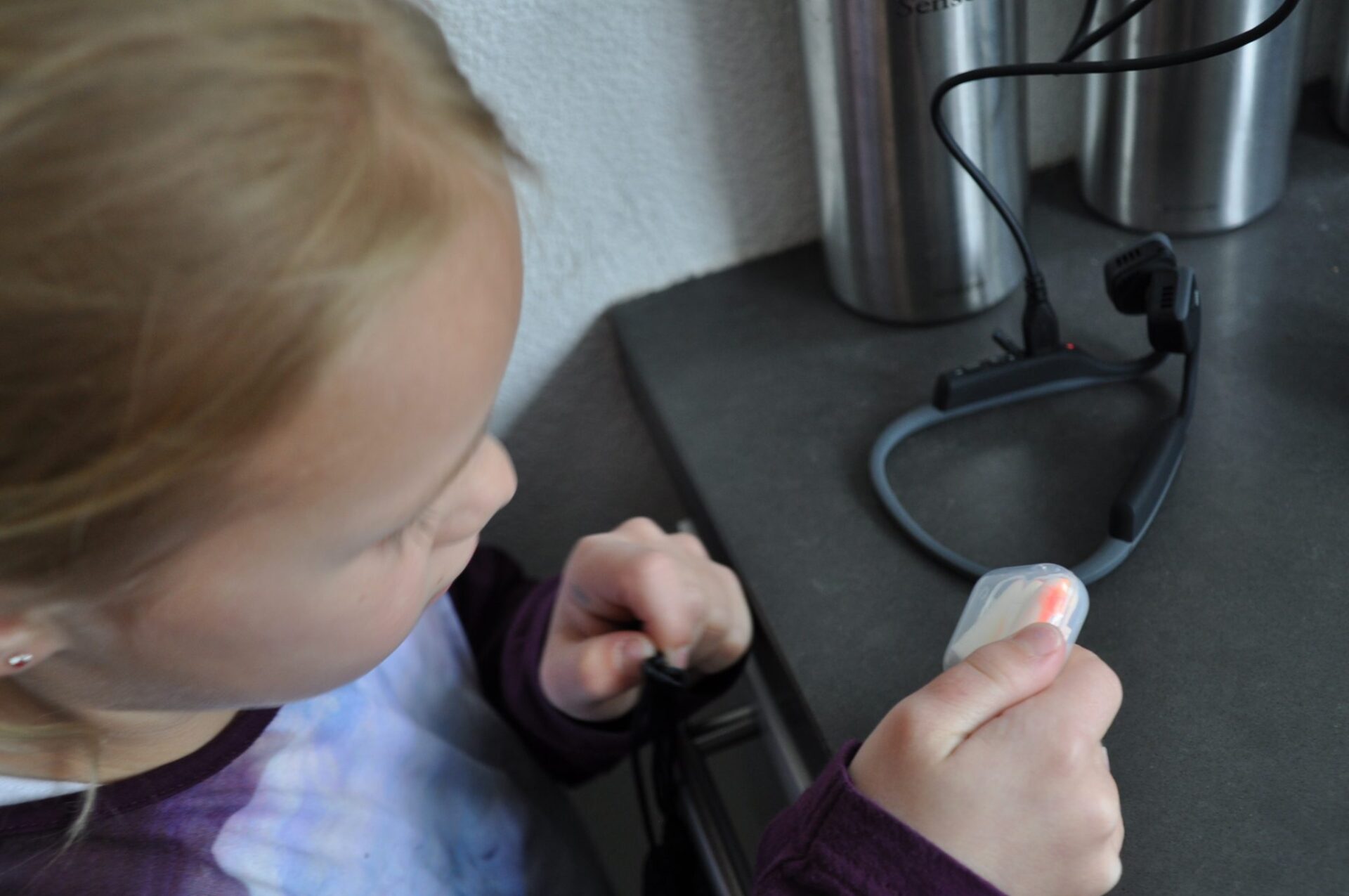 Wij zijn er nog niet helemaal uit. Een probleem bij de meeste koptelefoons is dat je kinderen geen omgevingsgeluid meer horen.