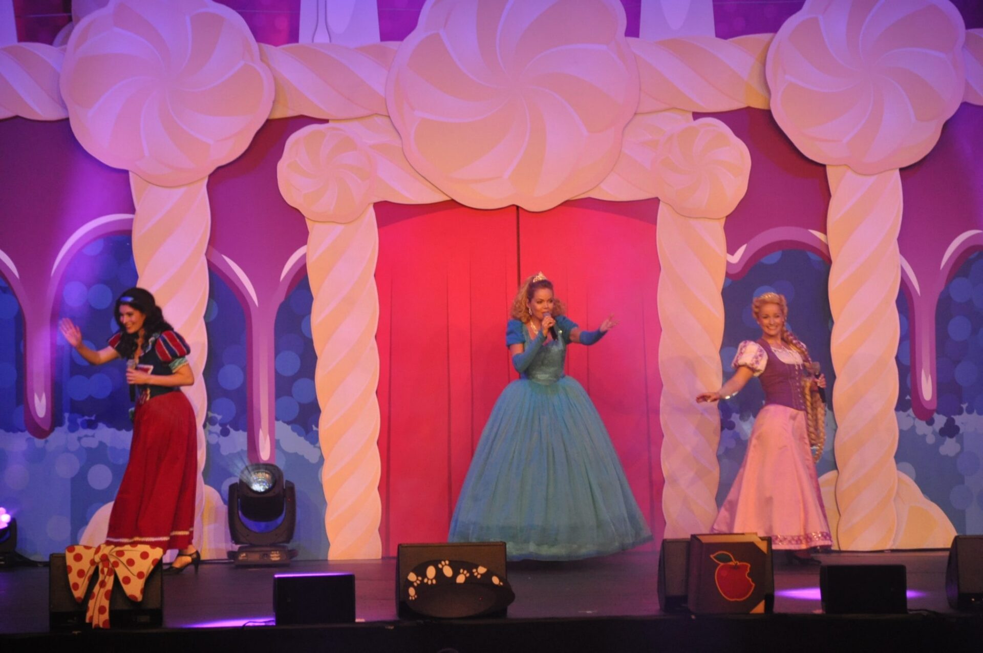 Bij de volgende act was dat heel goed zichtbaar: ze gingen uit hun dak bij Ernst en Bobbie (die we pas nog hadden gezien in het theater) en zongen alle liedjes uit volle borst mee! ‘Elektriciteit’ werd overigens de hele avond herhaald 😆 Daarna kwamen de Sprookjesprinsessen Rapunzel, Assepoester en Sneeuwwitje en zaten ze ademloos te kijken. En toen was het even schrikken… In plaats van Jul & Julia kwamen er 2 boeven op het podium! Oh nee! En ze zongen VALS! Afgrijselijk. Gelukkig werd het snel opgelost en konden we de muizendans bewonderen.