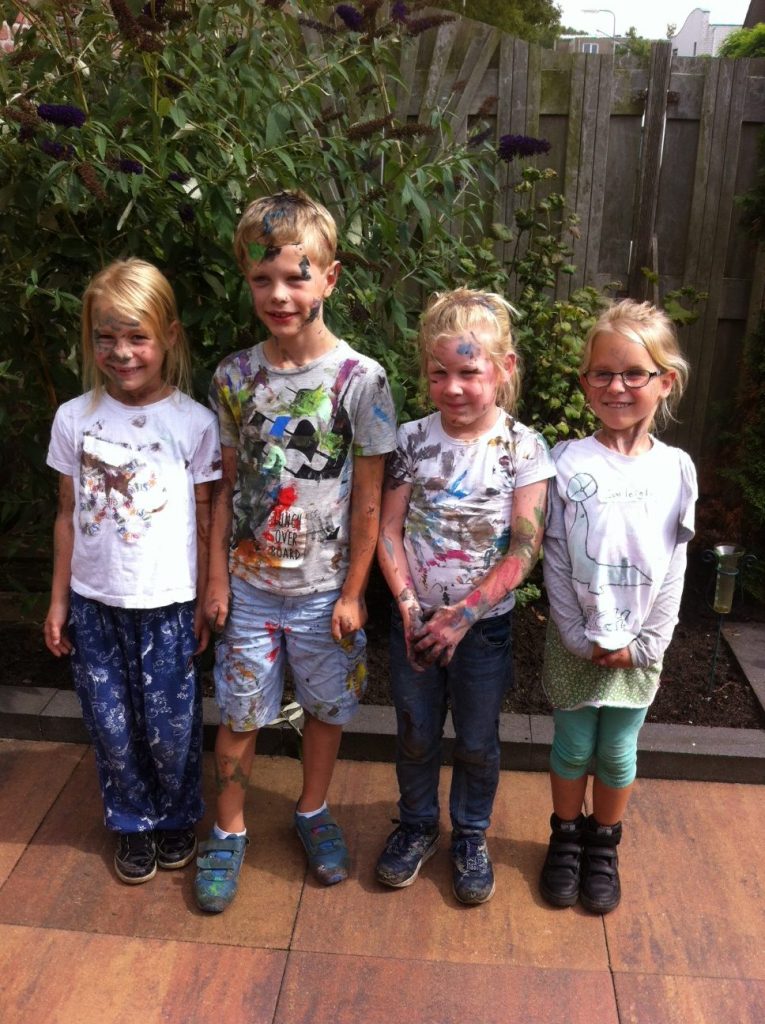 Woensdag was verfdag en dan weet je als Bodegraver dat je je kind ECHT oude kleren aan moet doen. Het shirt van mijn oudste heb ik bij thuiskomst in de vuilnisbak geflikkerd, maar dat was ingecalculeerd. De jongste was redelijk schoon. Alleen – zoals elke dag deze week – wat stiftversieringen op haar gezicht en nek. Het verfgevecht was niet haar ding geweest 😆 , maar over de show van John Watch en Wendy Wijzer waren grote verhalen. Elke dag wordt er een sleutel gevonden in een ander tijdperk. Ook het grote feest met confetti in de tent maakte indruk. Deze mama geniet elke dag van de livefeeds op Facebook, de honderden foto’s die ’s avonds worden gepost gemaakt door professionele fotografen én natuurlijk van de dagelijkse vlogs van VitamineBritt die de huisvlogger van de Vakantiespelen is.