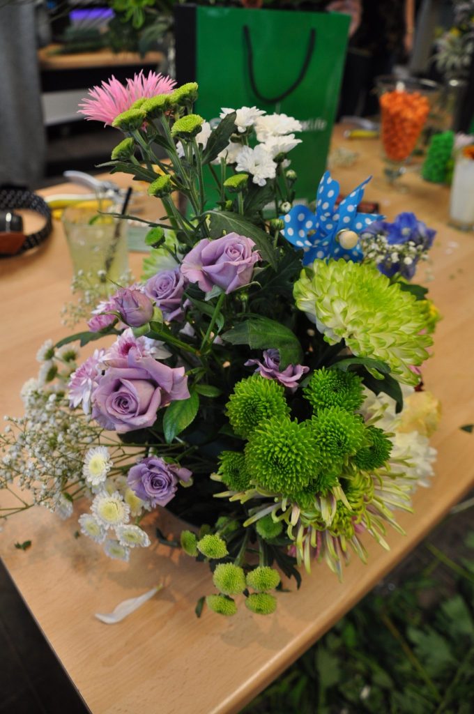 We kregen een tasje mee met een snijmes en handig snoeischaartje van het merk Oasis, die heel fijn werken. Deze hadden we tijdens de workshop al gebruikt. Bovendien mochten we van de overgebleven bloemen ook nog uitzoeken om mee te nemen, bijvoorbeeld voor je moeder! Dat heb ik natuurlijk gedaan. Ook zodat mijn oudste – wiens lievelingswinkel de bloemenwinkel is – de kans kreeg om zelf creatief met bloemen te zijn. Mijn huis staat nu vol met al die pracht en ik hoop er de komende weken nog van te kunnen genieten. Dit wil ik zeker vaker zelf gaan doen! Gewoon een zwik losse bloemen kopen en thuis aan de slag. Errug, errug leuk. Ik ben er nog vol van!