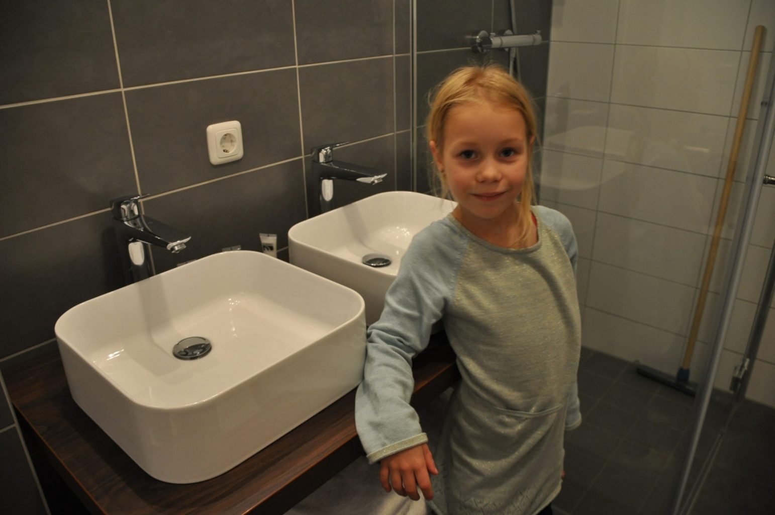 De dubbele wasbak in de badkamer vond ik een prettig extraatje. Net even wat meer ruimte als er 2 meisjes tegelijk hun tandenpoetsen. Op mijn dochters heeft het bad de meeste indruk gemaakt: een bubbelbad met discolampen. De bubbels en het verkleurende licht kun je afzonderlijk van elkaar bedienen. Maakt wel veel herrie als de bubbels aan staan, maar wat hadden de dames een plezier! Uiteraard hebben wij het bad ook uitgeprobeerd. De bubbels zijn fijn, maar niet handig als je een tijdschrift wilt lezen in bad ontdekte ik al snel, haha. 😆 In de douche miste ik een plankje om de shampoo op te zetten, maar je hebt veel ruimte en een fijne straal. In je welkomstpakket zit douchegel, shampoo en andere badkamerproducten net als je in een hotelkamer zou verwachten en er zijn genoeg zachte handdoeken voor het hele gezin. Overigens is er in de schuur een wasmachine aanwezig, dus mocht je tekort komen is het mogelijk een was te draaien.