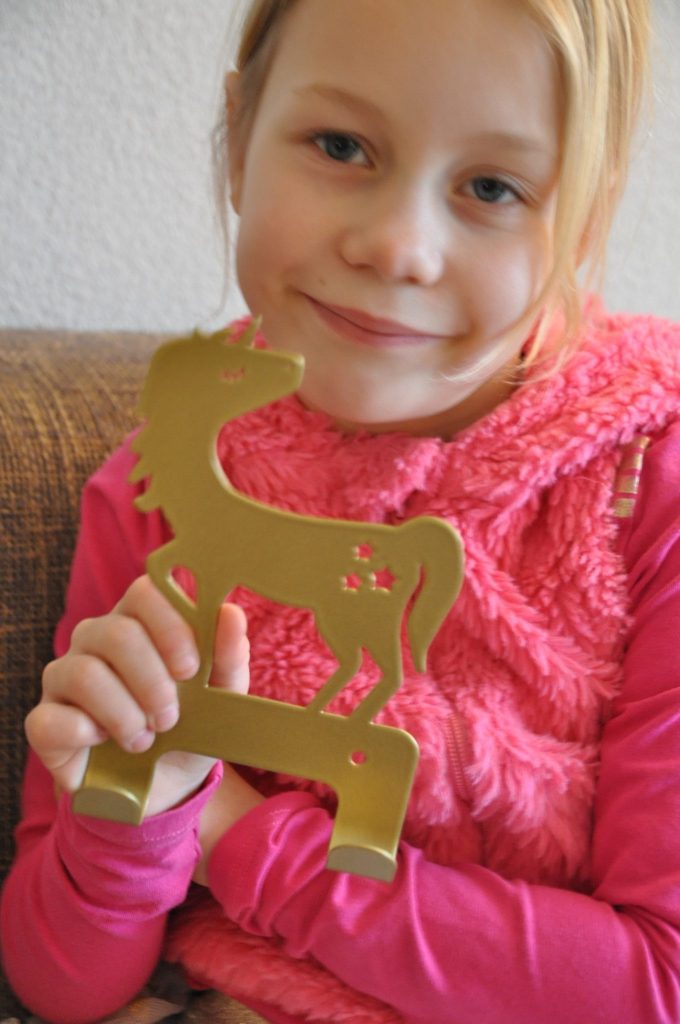 Goud en eenhoorns. Een magisch recept voor succes, als je punten wilt scoren bij je dochter bij het inrichten van haar slaapkamer. Mijn oudste dochter heeft dit al uitgesproken als haar grote droom. In een eerder artikel gaf ik al heel veel inspiratie voor knuffelige en gouden kinderkamers, en dat vonden jullie geweldig aan de kijkcijfers te zien. Vandaag staan de nieuwe accessoires van Eina Design in de spotlights, en dan in het bijzonder de nieuwe gouden eenhoorn wandhaak!