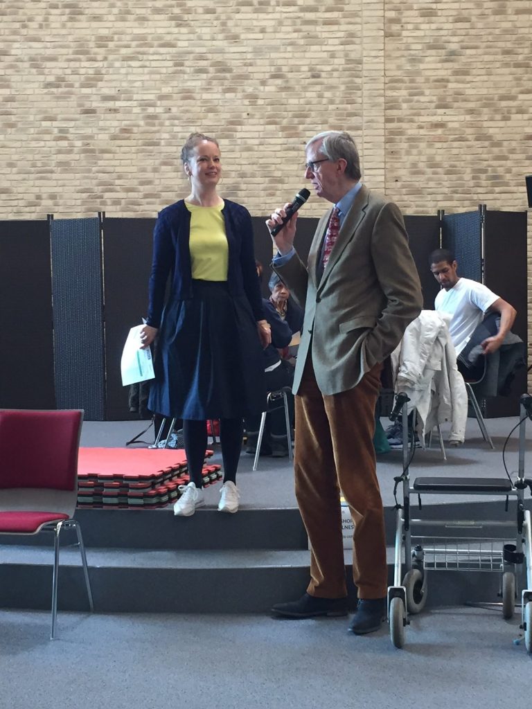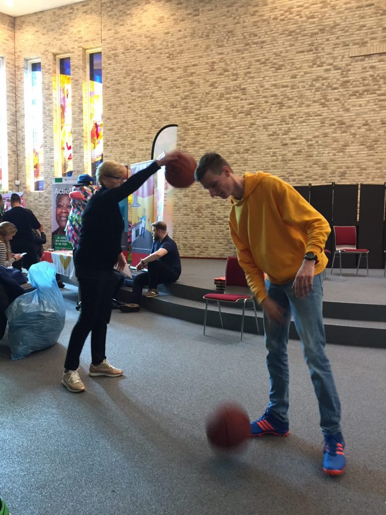 Bewegen om vitaal te blijven was dan ook één van de items op het Fitfestival voor 55+ers georganiseerd door de Gemeente Rotterdam in samenwerking met Buurtwerk en DOCK. Verschillende sportverenigingen kwamen een demo geven. Er was bijvoorbeeld een fitnessclub die zittend op een stoel lieten zien hoe zij als groep – met een gezellig muziekje – in beweging blijven. Er werd gebokst, er werd gebasketbald en zelf deed ik mee aan een yoga clinic met allerlei ademhalingsoefeningen om je lijf te trainen. Onze leraar Saravanan Pillai van Stichting Ikeys legde uit hoe de oefeningen die we deden ervoor zorgen dat je lijf in goede gezondheid blijft. We zagen er niet op ons charmantst uit tijdens de oefeningen, maar het was wel heel leerzaam en de leraar wist het leuk te brengen. Zo moest je met je vinger je neusgat dichthouden en dan heel snel door je andere neusgat inademen. Later wisselden we van neusgat. Zo krijgen je hersenen in 1x een flinke zuurstof boost.