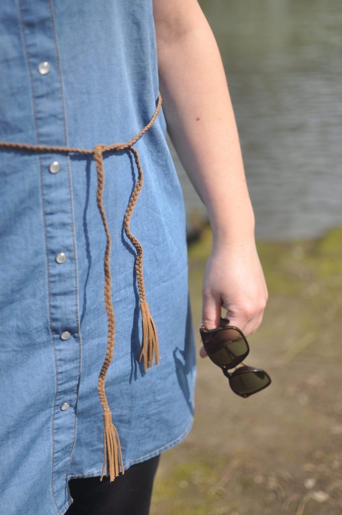 Het spijkerstof tuniekje is ook van Jacqueline de Yong en was 29,99 euro. Inclusief het koordje in de taille. Hij it vast met drukkertjes. Deze is wat uit mijn comfortzone, maar ik kreeg de afgelopen jaren van verschillende vriendinnen te horen dat zo’n jurkje van spijkerstof met een legging eronder mij waarschijnlijk leuk zou staan. Nu het experiment dus! Tijdens het bloggerweekend had ik alleen geen legging mee, dus op de foto draag ik er een zwarte broek onder. Vanwege het koude weer en het klussen heb ik dit tuniekje nog niet gedragen behalve voor deze foto’s, maar dat komt wel weer als de zon zijn intrede doet. De Ray-Ban zonnebril komt van Brandfield.