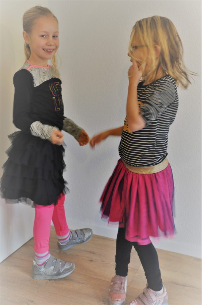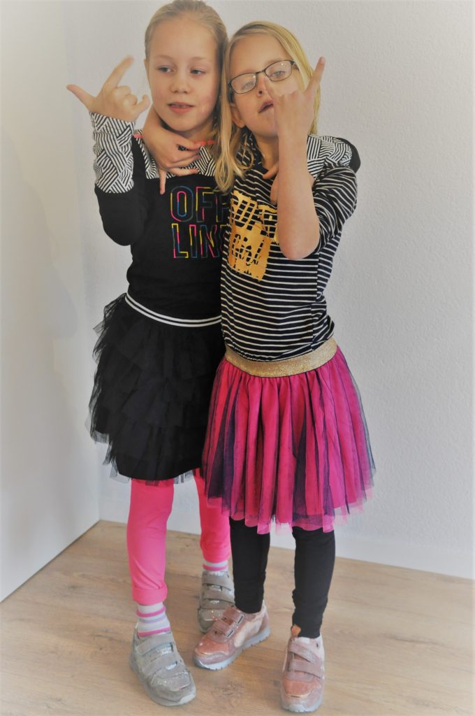 Zoals je op de foto ziet waren de dames een beetje melig. Ze hadden zoveel lol samen, dat het voor mama niet meeviel om ze een beetje goed te fotograferen. Maar goed: dat bewijst weer dat ze zich lekker voelen in deze kleding en blij kinderen betekent toch vaak ook een blije mama. 😉