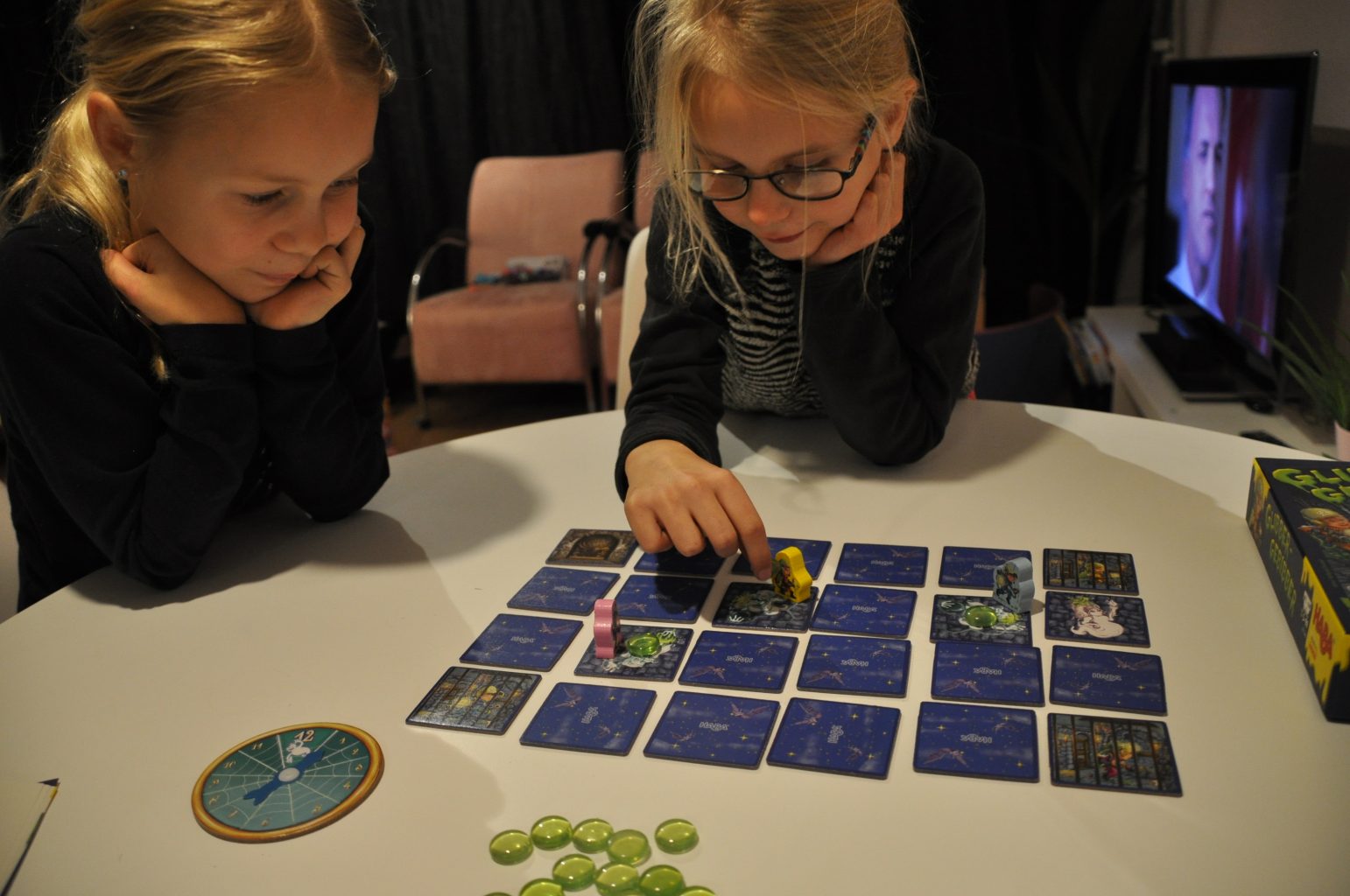 Mijn jongste dochter vindt dat het spel erg leuk gemaakt is, omdat er ‘slijmkogels’ bij zitten. De oudste benoemt juist dat het schrikeffect van Glibber Gebibber leuk is: wat zal er onder het kaartje zitten dat je omdraait? Als je maar niet naar de kerker hoeft… Zelf ben ik juist over het coöperatieve element van het spel te spreken en dan met name dat je geen ‘eigen’ poppetje hebt, dat vind ik origineel en leerzaam voor de kinderen.