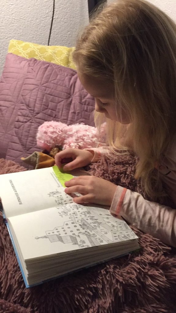 Tjibbe Veldkamp deed de vertaling. Dochterlief heeft het boek nu bijna uit en hoopt de volgende delen voor haar verjaardag te kunnen vragen. Of misschien toch een boek van de Waanzinnige Boomhut serie? Als moeder vind ik het vooral erg fijn dat het boek mijn kind aanspreekt, want lezen in een leesboek doet ze thuis niet graag. Nu trekt ze zich toch regelmatig even terug onder haar dekentjes met dit boek.