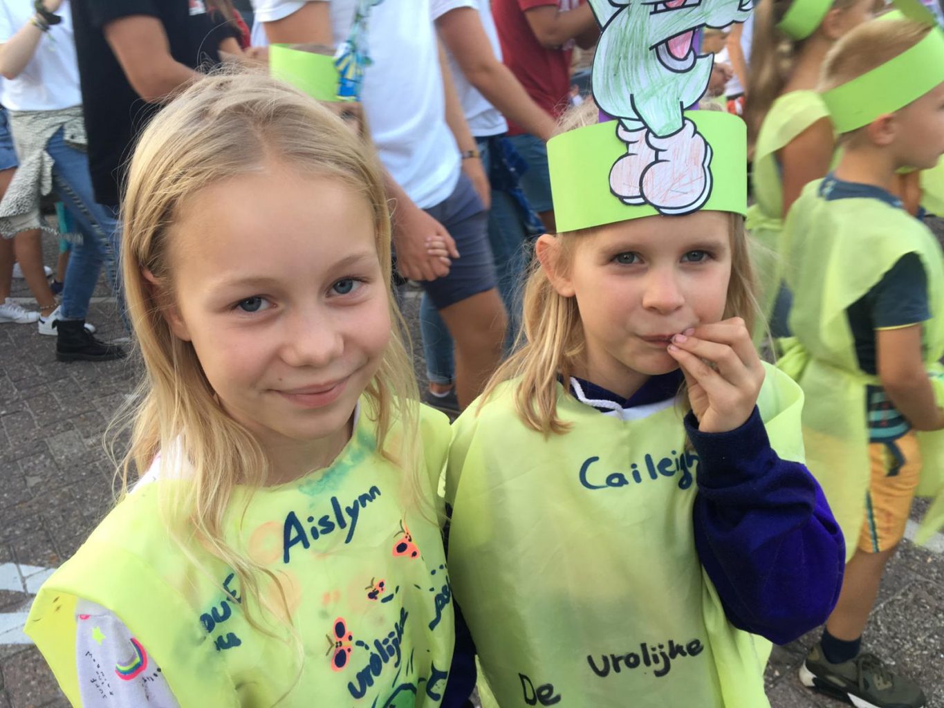 Donderdag stond er voor de meisjes waterpret op het programma. Verzorgd door de brandweer met een heleboel zwembadjes, waterspuiters, strandballen en wat al niet meer. Ik kon alleen nergens de bikini’s van de kinderen meer vinden… waarschijnlijk zoekgeraakt met scoutingkamp, dus hopelijk vinden we ze daar terug als het scoutingseizoen weer begint. We begonnen de dag weer gezellig met de neefjes en daarna naar de Vakantiespelen. Einde dag wilden de meisjes heel niet mee naar huis, ze waren nog zo lekker bezig met knutselen. Daarom maakte ik een live filmpje (op mijn persoonlijke facebook) en ondertussen wees de groepsleiding mij op de geweldige Yoshi tekening die mijn oudste op haar cape voor de optocht had gemaakt. Errug gaaf!