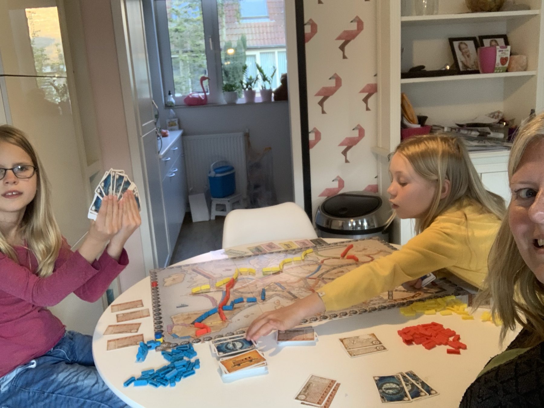 Je speelt Ticket to Ride met 2 tot 6 spelers vanaf een jaar of 8. Het spel duurt ongeveer een uur. Ons testpanel bestaande uit mijzelf en mijn dochters van 7 en 9 jaar, is inmiddels al een beetje verslaafd. We hadden het spel snel onder de knie, maar het blijft goed opletten waar welke stad nu precies ligt en hoe je deze via jouw wagonnetjes met elkaar verbindt. Met de jongste moeten we af en toe even meekijken om haar route aan te wijzen, maar verder kan ze zonder hulp spelen. Je moet steeds nadenken welke strategie je volgt en het blijft een verrassing welke kaarten (met routes of treintjes) je pakt, daarom blijft dit spel leuk. Echt een fijn spel om samen met de kinderen voor te gaan zitten!