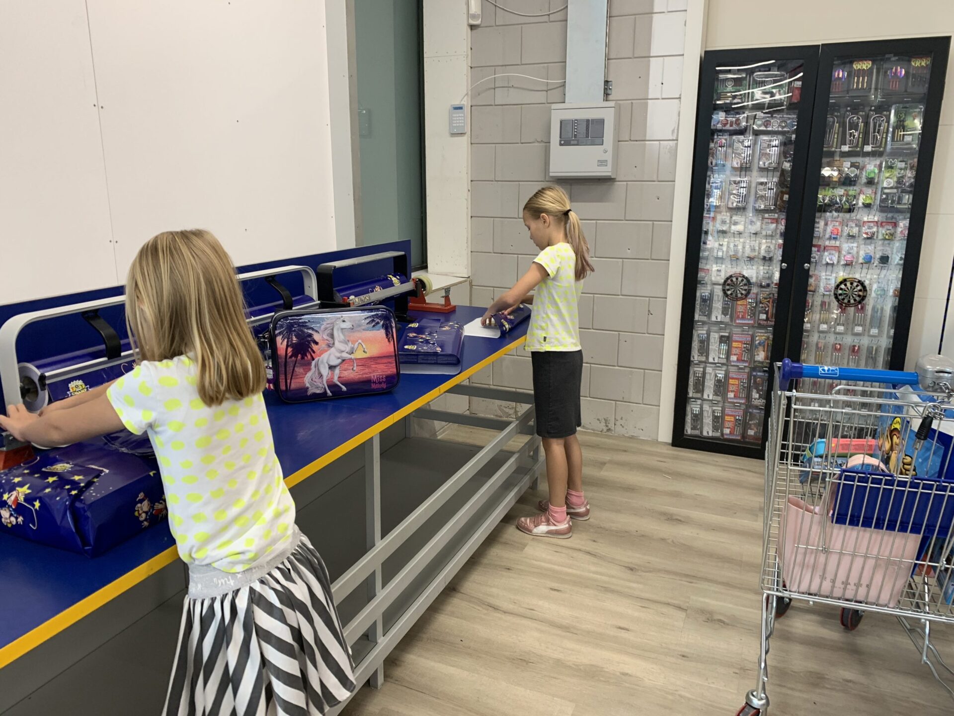 De bijna jarige Jet had een shopbudget gekregen van mama, van papa, van opa uit Engeland en van opa en oma. Daarbij mochten beide dames van hun papa iets uitzoeken voor de zomervakantie en van mij mochten ze een nieuwe broodtrommel en schoolbeker in de winkelwagen stoppen. Grote zus wilde graag een goede pen en zag een mooie schoolagenda. De verjaarscadeautjes hebben we na afloop zelf ingepakt en krijgt ze pas als ze echt jarig is.