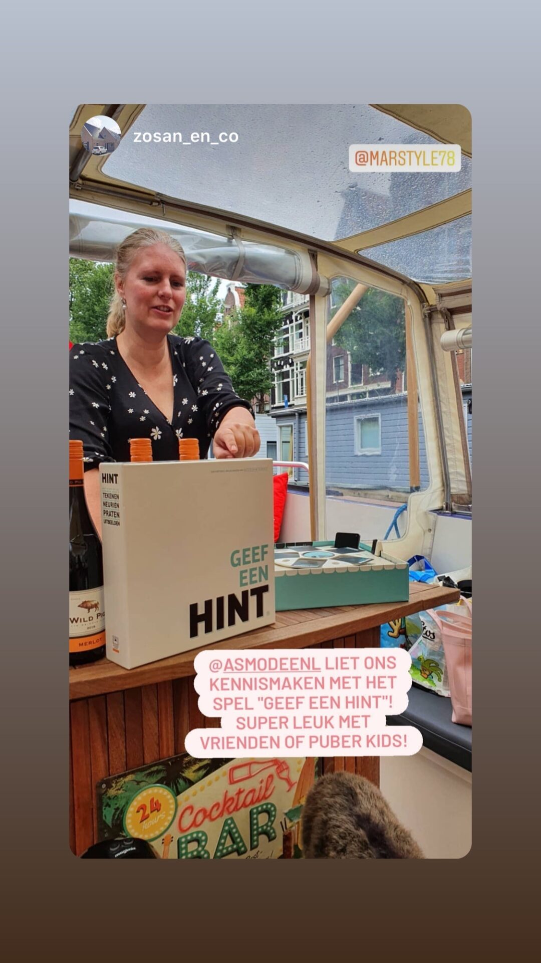 Ga je met een groep vrienden barbecuën, op vakantie met de familie of zoek je een leuke activiteit voor de jaarvergadering van een vereniging? Met Geef een HINT ben je verzekerd van een lolletje. Ik heb dit spel ontvangen van spellenmerk Asmodee en nam het mee op vakantie en op de Blogboot. Op vakantie viel het behoorlijk in de smaak bij de groep tieners en op de Blogboot konden we er met de damesclubjes erg om lachen. Op elk kaartje staat een hint en door te praten, tekenen, neuriën of uitbeelden moeten jouw teamgenoten raden welk begrip je bedoeld. Lekker interactief dus!