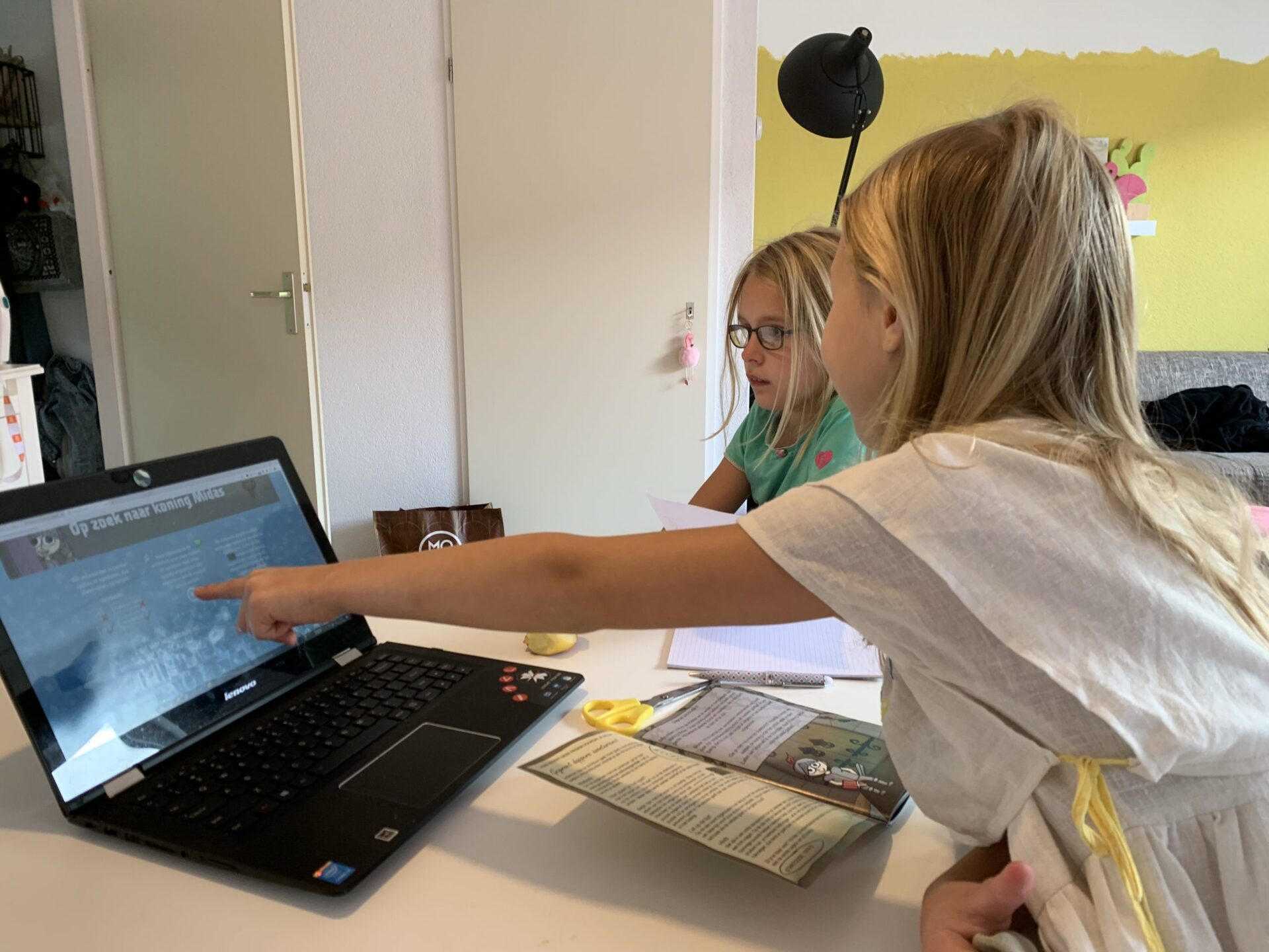 Wij speelden het eerste avontuur, Op Zoek Naar Koning Midas, dat sinds juni te koop is via de webshop van Avontuur in Huis. Ik heb af en toe geholpen met het voorlezen van het verhaal en puzzelen, maar de kinderen kwamen er zelf ook heel aardig uit. Ze vonden het erg leuk om te doen, vanwege de verschillende soorten puzzels. Sommige dingen lukte ons rekenwondertje beter, andere dingen zag de talenknobbel direct. Grappige tekeningetjes in het boekje, waardoor het laagdrempelig oogt en de kinderen zich wel aan de puzzels willen wagen. De voorbij tikkende tijd is wel extra spannend natuurlijk, daarom hebben wij de bijbehorende spotify muzieklijst niet gebruikt. Onze eindtijd was 1 uur 10 minuten en 28 seconden. Stiekem vond ik het een leuke manier om meteen wat schoolse vaardigheden te oefenen, zoals rekenen, lezen en logisch denken. Maar dan in een gezelliger jasje dan huiswerk. Lekker om samen te doen op een regenachtige middag en als beloning kregen ze een zakje chips met een groot glas limonade!