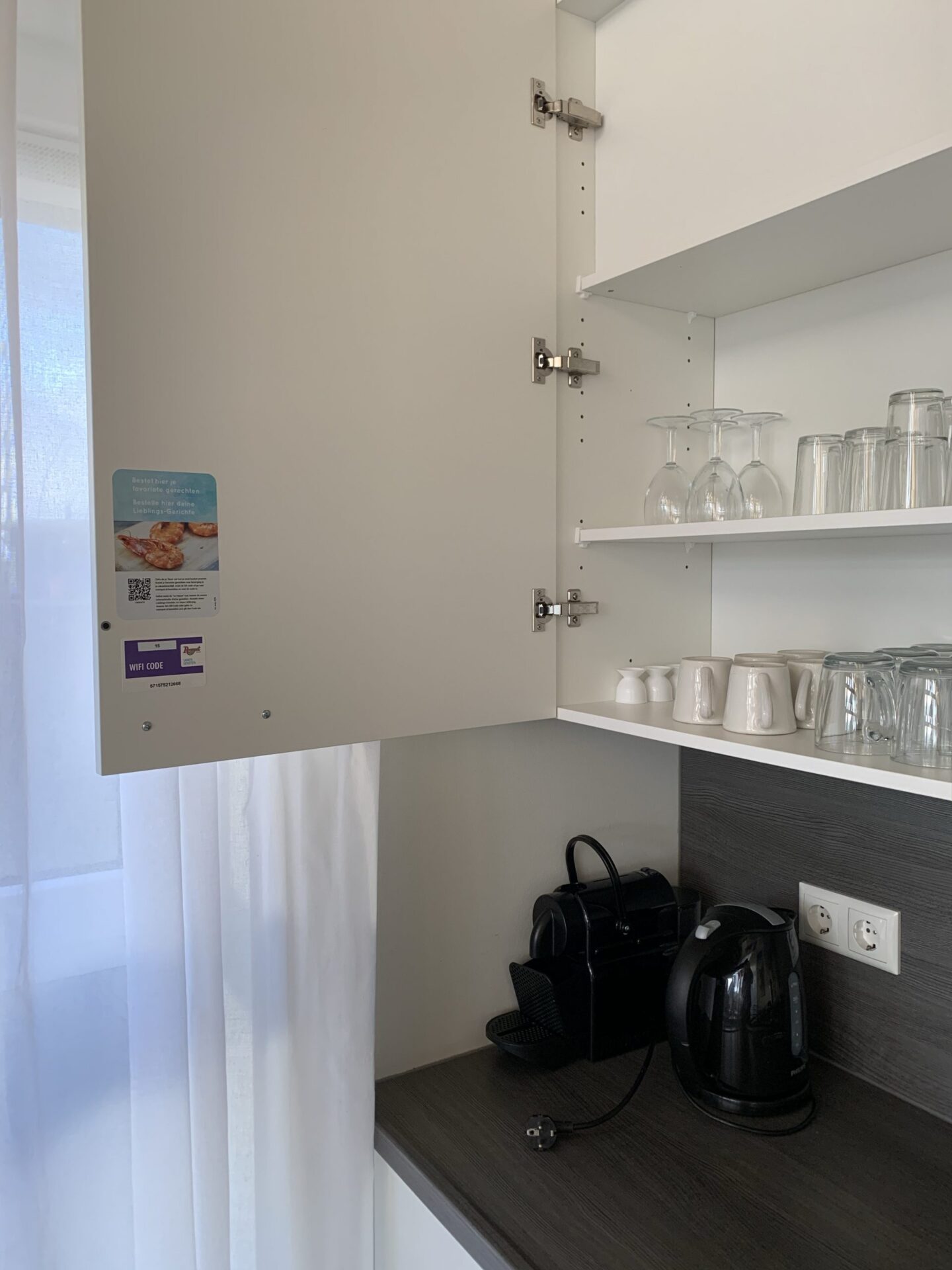 De vloerverwarming alleen al was luxe en comfortabel, alles was praktisch en modern ingericht. In de ouderslaapkamer hangt een extra televisie. In je keukenkastje vind je de wifi-code én de QR-code om eten te bestellen en in je vakantiehuisje te laten bezorgen. De ingebouwde chromecasts in de televisies (om zelf Netflix, Prime of Disney+ te casten) kreeg ik helaas niet aan de praat. Met z’n 3tjes tegelijk op de wifi was geen probleem, dat was gewoon goed en het haperde niet. De bedden sliepen prima en de douche was heerlijk en ruim genoeg om de haren van een kind te wassen. Verder zijn er rookmelders in het huisje aanwezig, uiteraard een vaatwasser én een koffiecup-apparaat. Lekkere koffie dus (wel zelf de cups meenemen).
