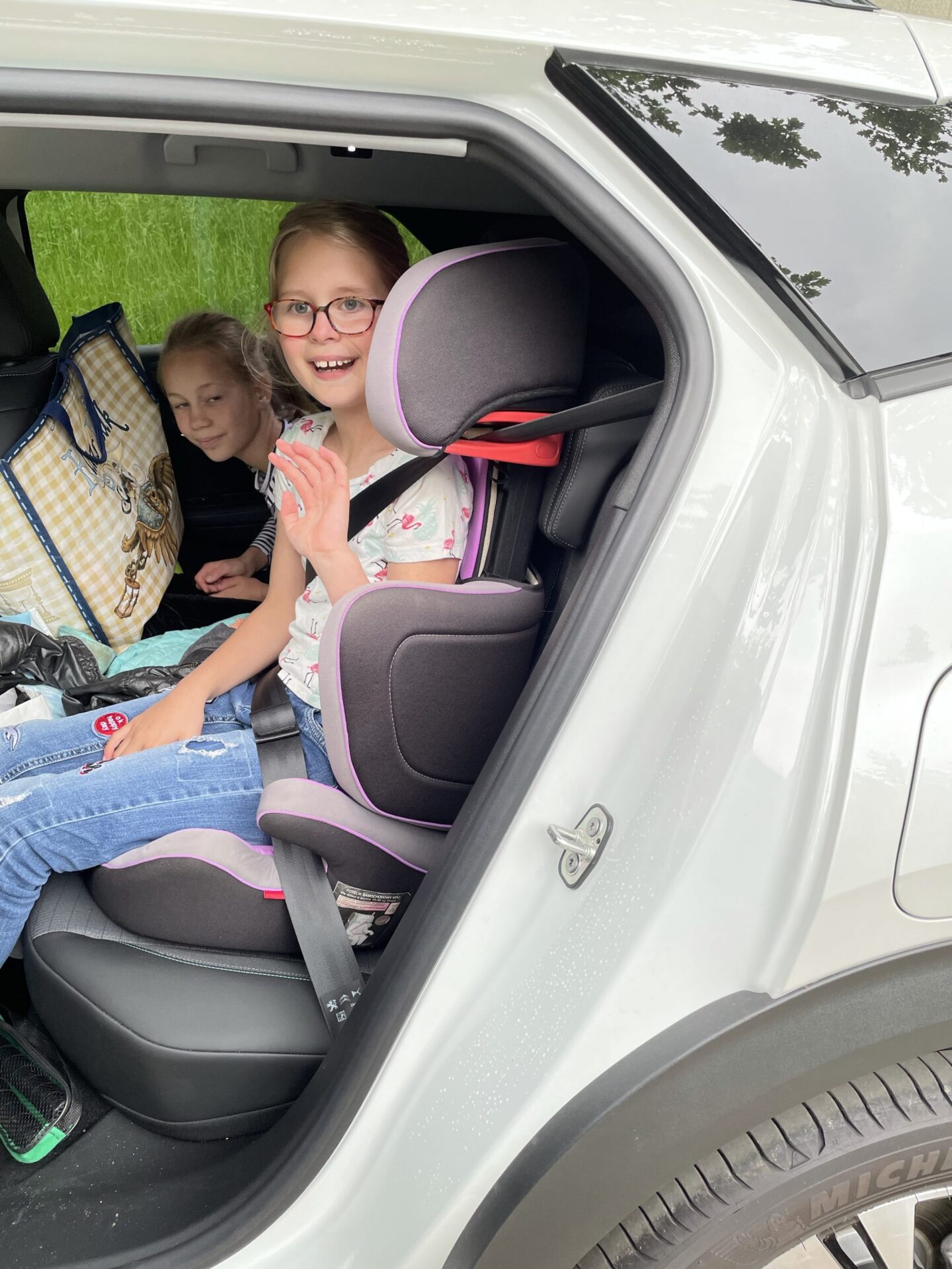 Ik reed deze Peugeot e-2008 vanuit het Groene Hart van Zuid-Holland naar Landal De Lommerbergen in Limburg en weer terug. Volgeladen met bagage om met mijn kinderen dit vakantiepark te reviewen. In de 2008 zijn isofix bevestigingspunten aanwezig voor een drietal kinderzitjes, maar ons zitje zet je eenvoudigweg met een autogordel vast. De kinderen waren blij met de extra beenruimte achterin ten opzichte van de 208. Achter de voorstoelen konden ze tijdschriftjes in de opbergzakken stoppen. In de kofferbak kon ik makkelijk onze rolkoffers en weekendtassen kwijt. Het KidzImpulz speelkleed stopte ik onder het de extra draagplank in de kofferbak naast de laadkabel. Handig, zo’n extra plankje! Overigens kun je er deze ook uit halen als je dat zou willen, net als de hoedenplank. Onder de armleuning naast de voorstoelen is ruimte genoeg voor een flesje drinken.