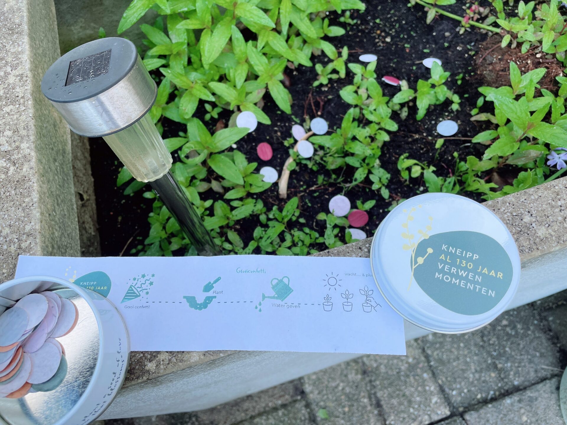 - Een leuk blikje met zaadconfetti om in de tuin te strooien. Zal een vrolijk resultaat geven in mijn bloembakken. “When you plant a seed of love, it is you that blossoms” staat er op. Mooie quote!