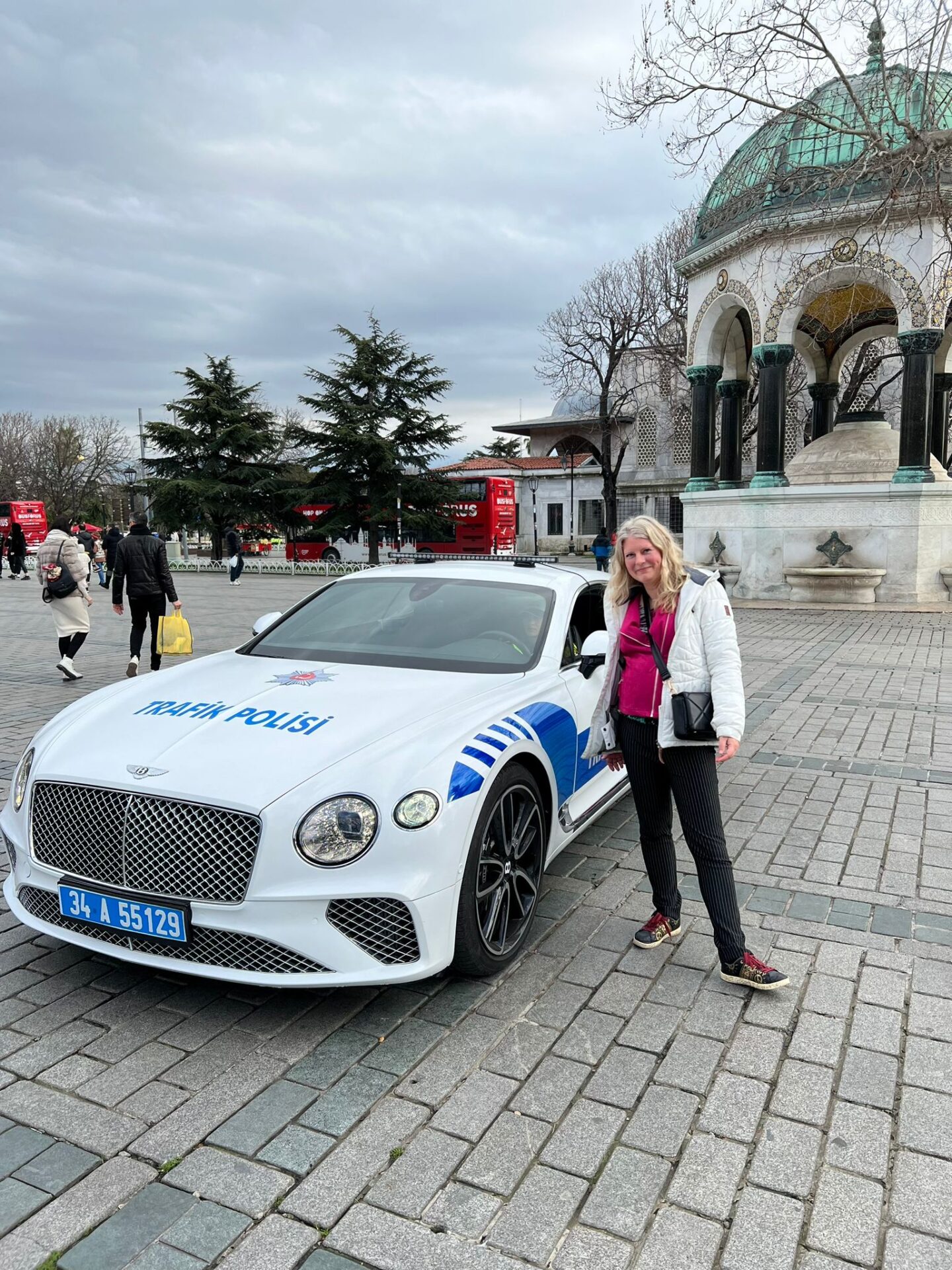 Vlakbij de Sultan Ahmed moskee stonden er supervette politieauto’s opgesteld. Ingevorderd van criminelen en de Turkse politie heeft die heel slim omgebouwd tot eigen voertuigen. Geen probleem om ermee op de foto te gaan. Daarna liepen we door naar het enorme gebouw van de Sultan Ahmed moskee. Ongelooflijk dat deze rond het jaar 1609 is gebouwd!