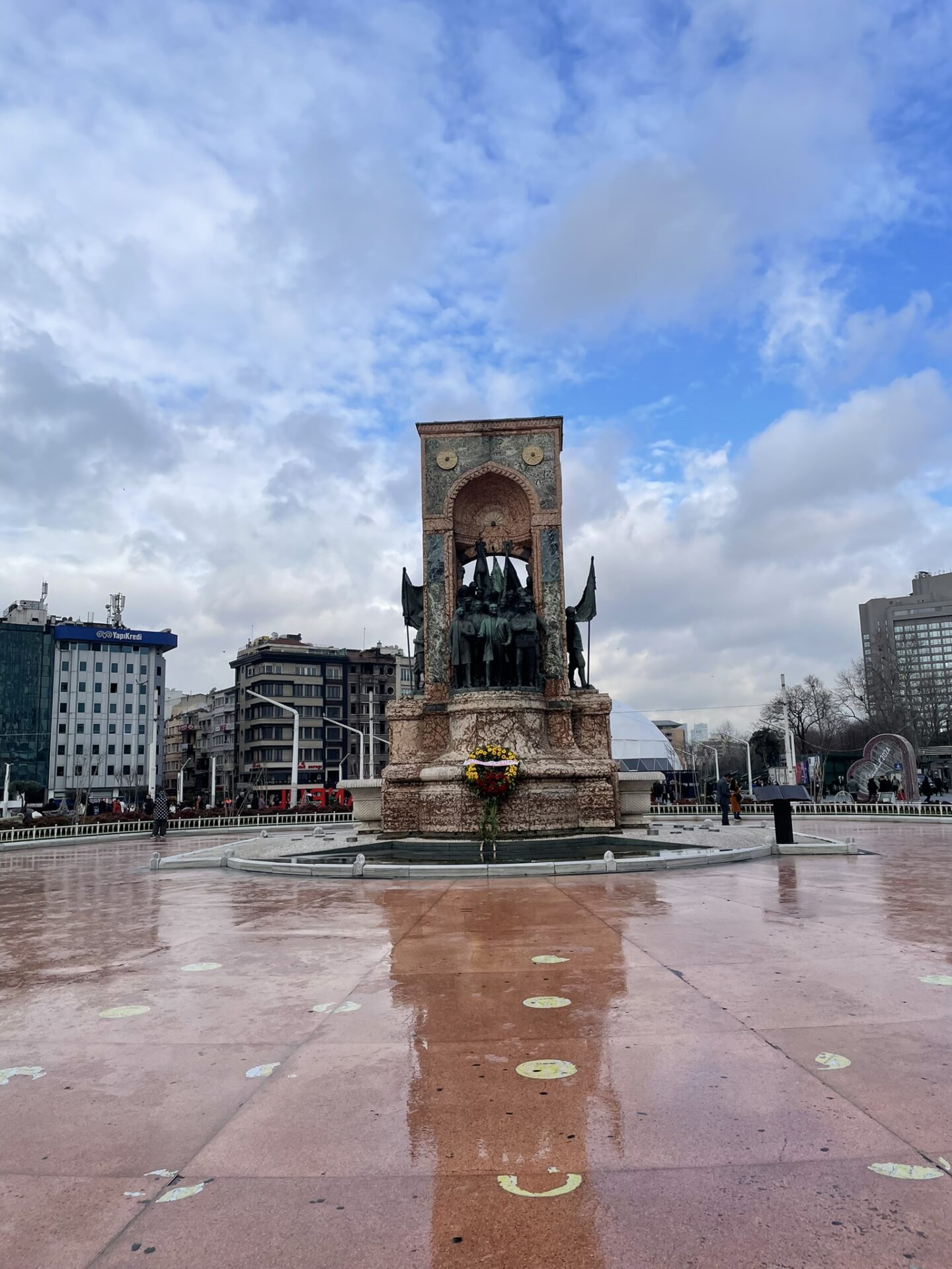 Taksim is een bekende en drukke winkelwijk met veel horeca gelegenheden rondom het Taksimplein. Daar staat het Monument van de Republiek waar we even een fotootje hebben geschoten. Erg gezellig om door te straten te lopen, want er hangen gezellige vlaggetjes en rijden vintage trams door de centrale voetgangersstraat Istiklal Caddesi.