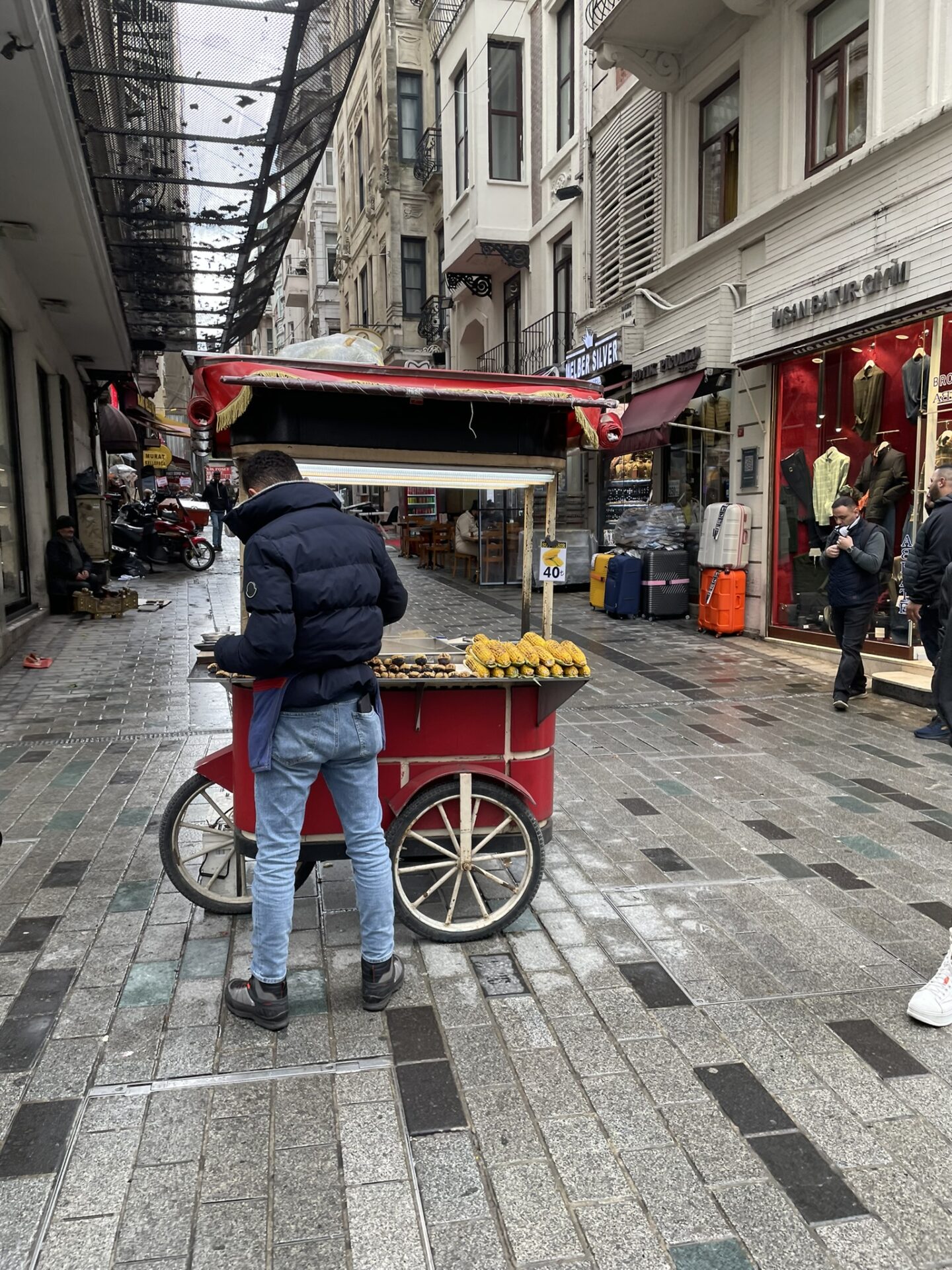 We aten een dürum bij een klein lokaal tentje, heerlijk… En goedkoper dan het ijsje dat ik verderop in de straat kocht vanwege de ‘show’ vol grapjes die de Turkse ijsverkopers er van maken. In Taksim kun je heerlijk shoppen, er zitten tal van bekende internationale winkelketens, bioscopen en cafés in 19e-eeuwse gebouwen. Een wirwar van zijstraten biedt plaats aan bars, antiekwinkels en dakrestaurantjes met uitzicht op de Bosporus (die we vanuit de taxi ook goed konden zien, indrukwekkend al die enorme containerschepen).