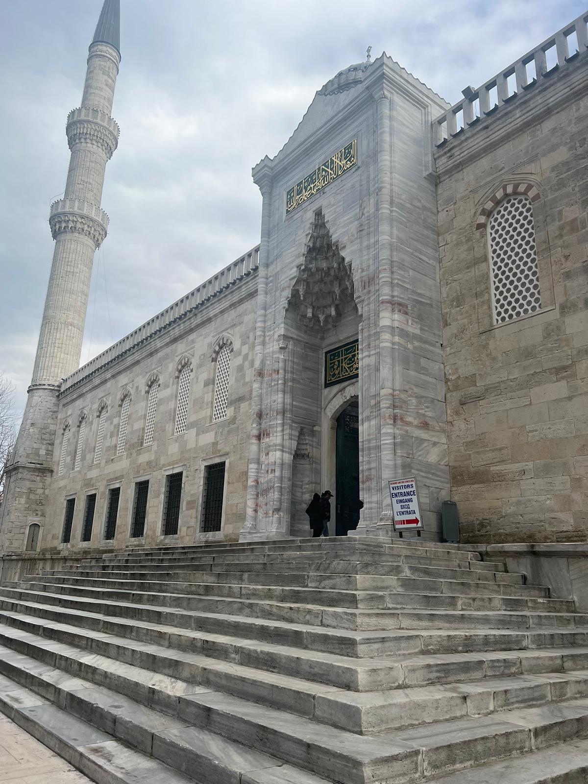 Op het binnenplein kun je de minaretten pas echt goed zien. Ik was nog nooit binnen in een moskee geweest, dat was ook nog even een dingetje. Onze taxichauffeur dacht dat je ergens hoofddoeken kon lenen, maar dat bleek niet het geval en mijn sjaal zat in de ruimbagage (nog ingecheckt op de luchthaven). Mijn capuchon voldeed gelukkig ook en zo mocht ik toch met de mannen mee naar binnen. De versiering aan het plafond van deze ‘blauwe moskee’ was werkelijk prachtig. Heel mooi om te zien. Wist je dat het zo’n 20.000 unieke handgemaakte tegeltjes zijn? Binnenkort zul je bij deze moskee ook entree moeten betalen, begreep ik. Achter de moskee en in de toiletgebouwen, heb je ook allemaal krukjes en fonteintjes voor gelovigen die hun voeten willen wassen.